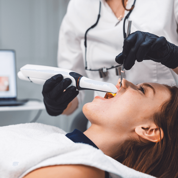 An intra‑oral scan that captures a 3D model of the teeth and bite, replacing traditional putty impressions for records, aligners, and custom appliances.