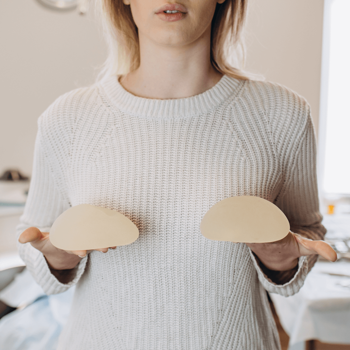 Most surgeons recommend a dedicated post-operative bra or a sports bra without underwire to support the breasts during early healing. This garment helps control swelling and keeps implants stable as your body adjusts.